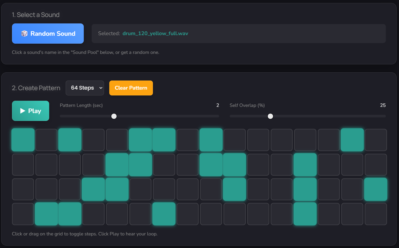 - Export feature added. Export your sound & pattern into a wav file set to your loop length.