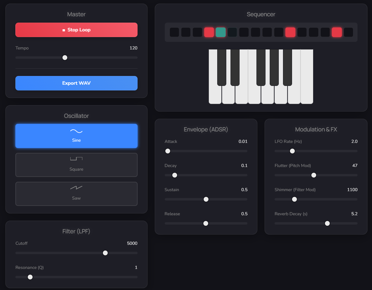 Export to WAV: Render your loop offline and download a clean, high-quality recording directly from your browser.